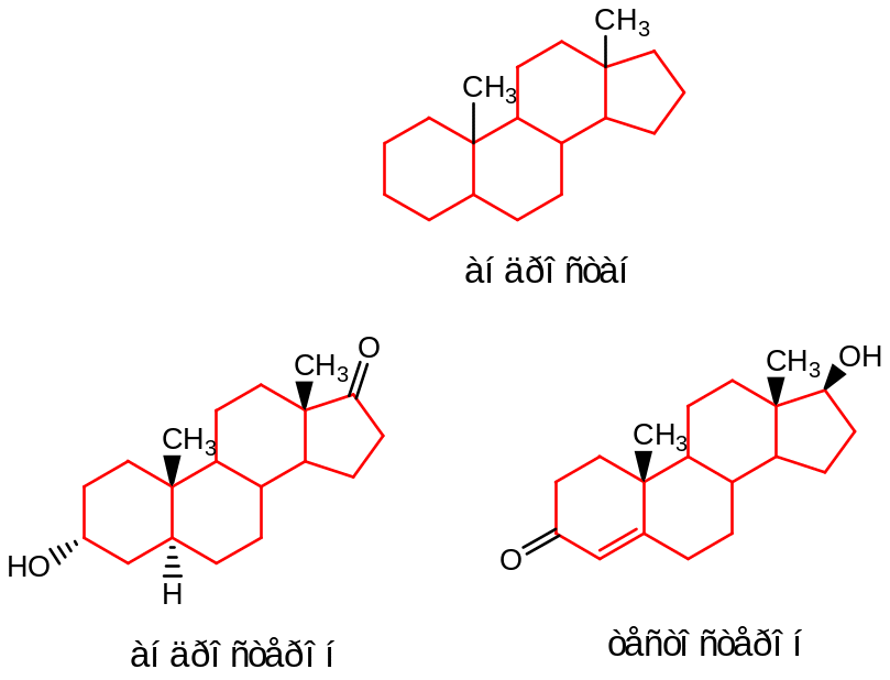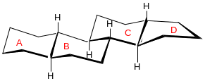 Циклический скелет стероидов относительно жесткий, в целом для природных стероидов наиболее характерны следующие типы сочленения и конформаций циклогексановых колец: