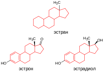 Эстрагены контролируют менструальный цикл у женщин, используются при лечении гипертонии и др. заболеваний. Наиболее важны эстрон и эстрадиол – производные эстрана.