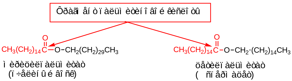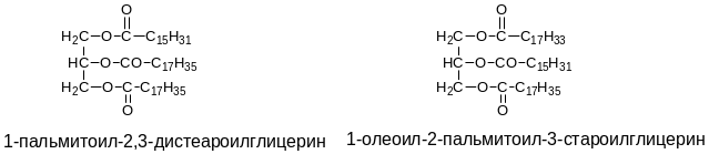Ниже приведены примеры нейтральных триацилглицеринов и указаны их систематические названия, основанные на названиях входящих в их состав жирных кислот.