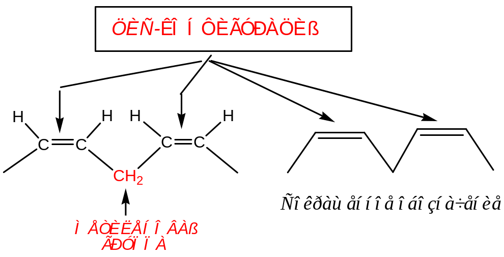 5. Если двойных связей несколько, они отделены друг от друга метиленовой группой. Все они могут быть представлены общей формулой: СН3(СН2)m(СН=СНСН2)n(СН2)kСООН