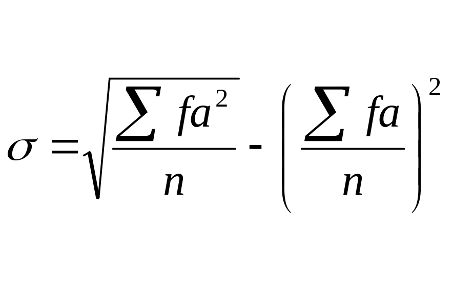 σ - стандартное отклонение по каждому признаку, взятое без наименования (подкоренное выражение в формуле для а не умножается на классовый промежуток)