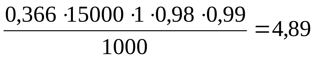 ·KM.B=0,418·15000·1,01·0,99=0,621м3
