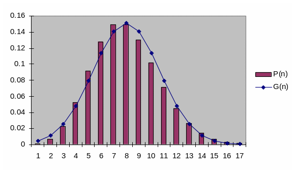 ).При увеличении среднего числа отсчетов дискретная природа величины в распределении Пуассона становится менее существенна, и распределение Пуассона хорошо аппроксимируется функцией Гаусса .