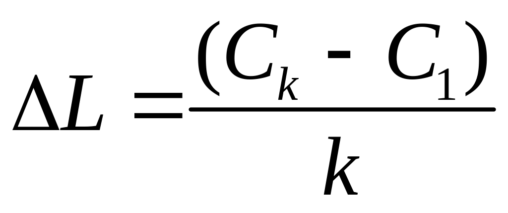 Разобьем отрезок [С1 , Сn] на k равных интервалов группировки (при ста измерениях можно взять k=10 12). Длина каждого интервала группировки L будет равна