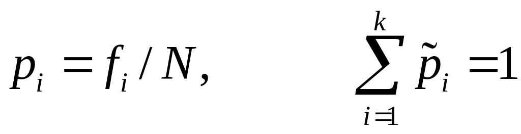 Относительные частоты наблюдений величин для измерений, приведенных в таблице 1.