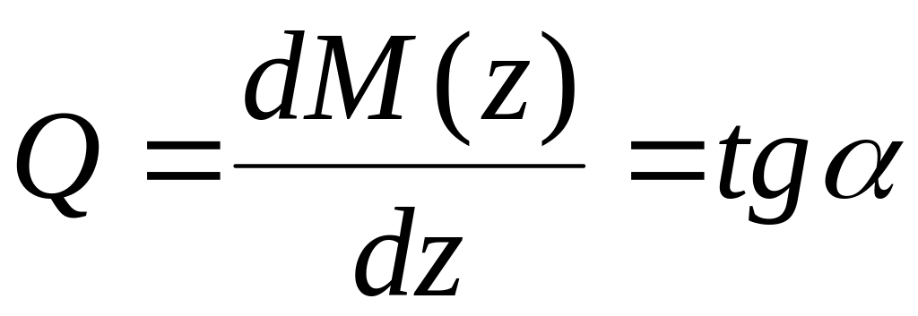 тангенс угла наклона к оси абсцисс (оси балки) касательной к кривой изгибающего момента в любом сечении балки численно равен ординате поперечной силы в рассматриваемом сечении, поэтому: