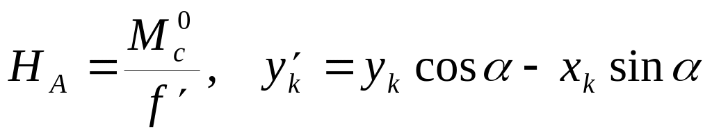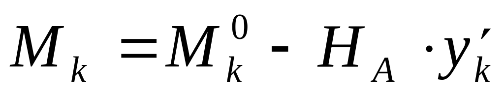 Тіреу А-ның үстіне арақашықтықты , жоғары саламыз. Оның соңғы нүктесін В тіреумен қосып (түзу арқылы) оң бұтақты аламыз. Арканың С нүктесінен оң бұтаққа проекция жүргізіп нүкте аламыз. Осы нүктені А нүктесімен түзу арқылы қосып сол бұтақты аламыз. Оң, сол бұтақтар мен арқалықтың өсінің арасындағы аймақ (үш бұрыш) иілу моментінің әсер сызығын береді. Оны бөлу арқылы ішкі керу әсер сызығы алынады;