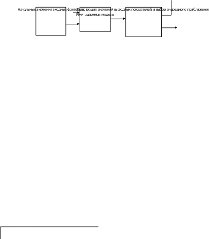 Если перебрать все варианты решений невозможно, то используются ме- тоды направленного перебора с применением эвристик. При этом оптимальное или близкое к оптимальному решение находится после многократного выпол- нения последовательных шагов (решений прямой задачи и нахождения для каждого набора входных параметров модели вектора результирующих показа- телей). Правильно подобранная эвристика приближает эксперимент к опти- мальному решению на каждом шаге.