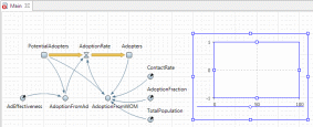 создайте еще одну переменную и назовите ее AdoptionFromWOM. За- дайте формулу интенсивности продаж продукта под влиянием устного общения потребителей продукта с теми, кто данный продукт еще не приобрел: ContactRate * AdoptionFraction * PotentialAdopters * Adopters / TotalPopulation.