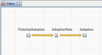 Начальное число потребителей нашего продукта равно нулю, поэтому в окне свойств накопителя Adopters введите 0 в поле редактирования Начальное значение.