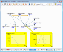 Добавьте график, отображающий изменение интенсивности продаж. Для этого добавьте на диаграмму еще один временной график, поместите его под добавленным ранее графиком. Измените свойства графика. В качестве Вы- ражения должно быть задано имя потока AdoptionRate.