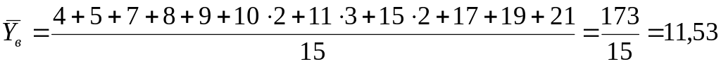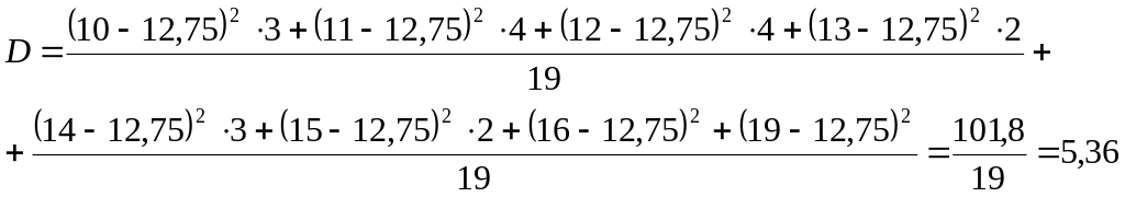 Учитывая, что среди значений есть повторяющиеся, вычисления можно записать в виде: