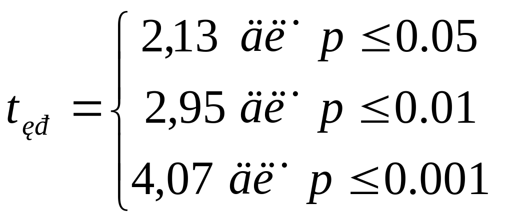 5.Найденное эмпирическое значение критерия Стьюдента сравнивается с критическим значением (по таблице 1 приложения) для данного числа степеней свободы.