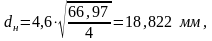 dн – внутренний диаметр трубопровода в напорной линии, мм; dс=32 мм.
