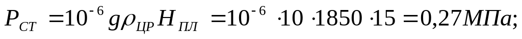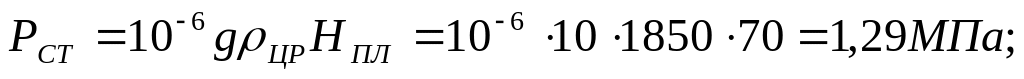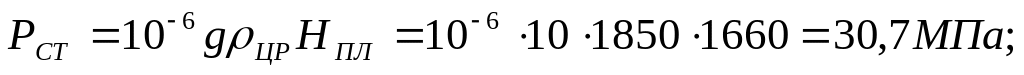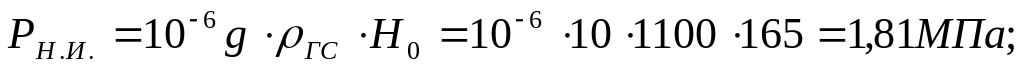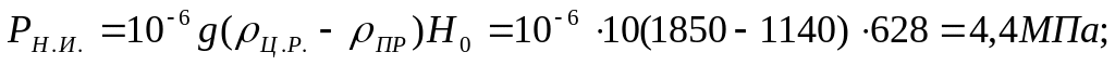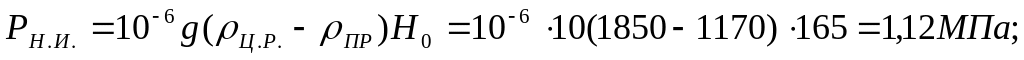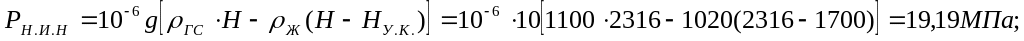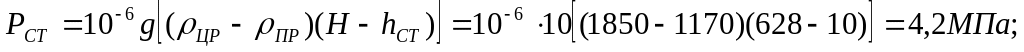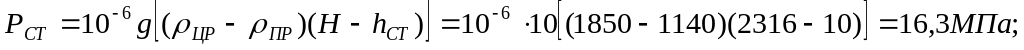 Рассчитаем избыточное наружное давление в момент окончания цементирования обсадной колонны для характерных глубин: