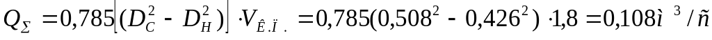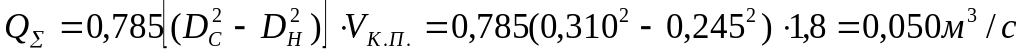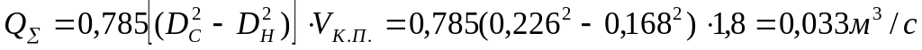 - суммарная производительность ЦА, участвующих в продавке цементного раствора для обеспечения турбулентного режима течения жидкости в затрубном пространстве ( ):