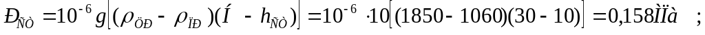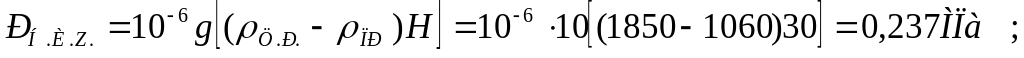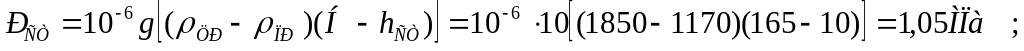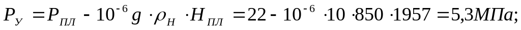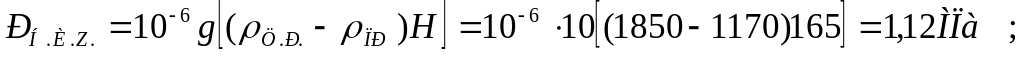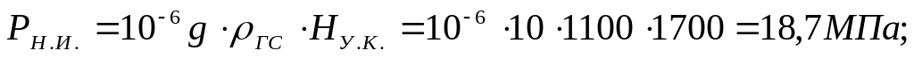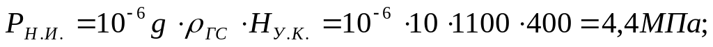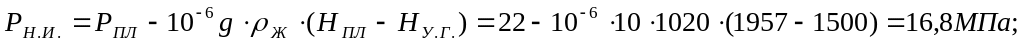 Рассчитаем избыточное наружное давление в момент испытания эксплуатационной колонны на герметичность снижением уровня: