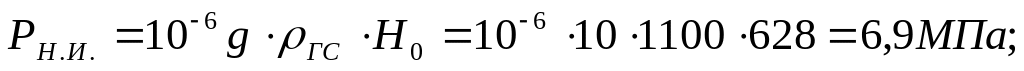 Рассчитаем избыточное наружное давление в момент испытания технической колонны на герметичность снижением уровня: