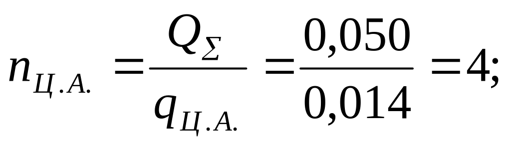 - количество ЦА, участвующих в продавке цементного раствора, определится из выражения: