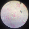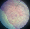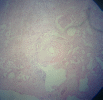 Участки в которых развилось мукоидной набухание эректильно окрашены в сиреневый/голубой цвет.