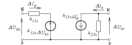 На основе приведенных уравнений можно построить эквивалентную схему транзистора в системе -параметров при включении с ОЭ (рисунок 2.12).