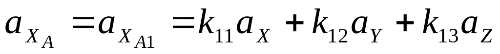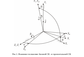 Определим проекции ускорения на оси базовой СК, приняв в качестве измеряемого ускорения ускорение свободного падения g