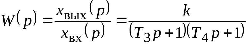 То есть, этот элемент может быть представлен последовательным соединением двух апериодических элементов 1-го порядка с постоянными времени Т3 и Т4 и коэффициента усиления k и 1.