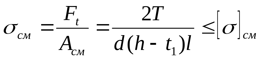 Основным критерием работоспособности этих соединений является прочность на смятие боковых граней шпонки (рисунок 2.17)