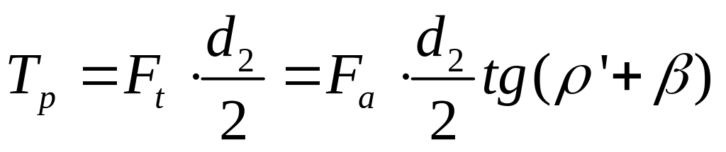 Для того, чтобы в процессе эксплуатации не происходило самоотвинчивания гайки, необходимо выполнение условия самоторможения: Тотв > 0. По выражению (2.11) это условие будет выполняться, если tg(ρ´- β) > 0 или