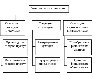 Операция — это экономический поток, представляющий собой взаимодействие двух институциональных единиц, осуществляемое по взаимному соглашению. Большинство операций предполагает наличие встречных потоков между участниками, т.е. одна сторона предоставляет другой стороне товар, услугу, труд или актив, а взамен получает компенсацию.