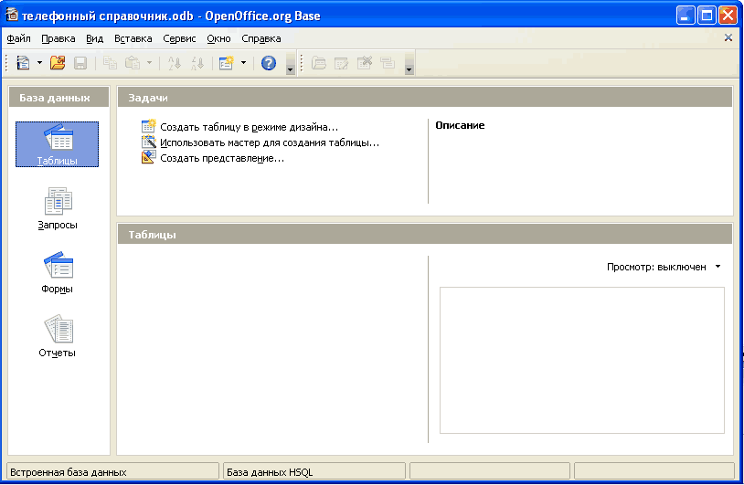 - •База данных «телефонный справочник» готова! Но для работы с ней необходимо создать Формы! Создание бд в OpenOfficceBase