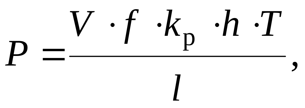 где V – объем изделий, имеющих длину l, размещаемых по ширине конвейера, м3; f – скорость движения конвейера, м/ч; h – количество рабочих часов конвейера в сутки, h = 16 ч; T – расчетное количество рабочих судок в году T = 247 сут; kр – коэффициент снижения производительности конвейера из-за разрыва между торцами изделий определяется по формуле