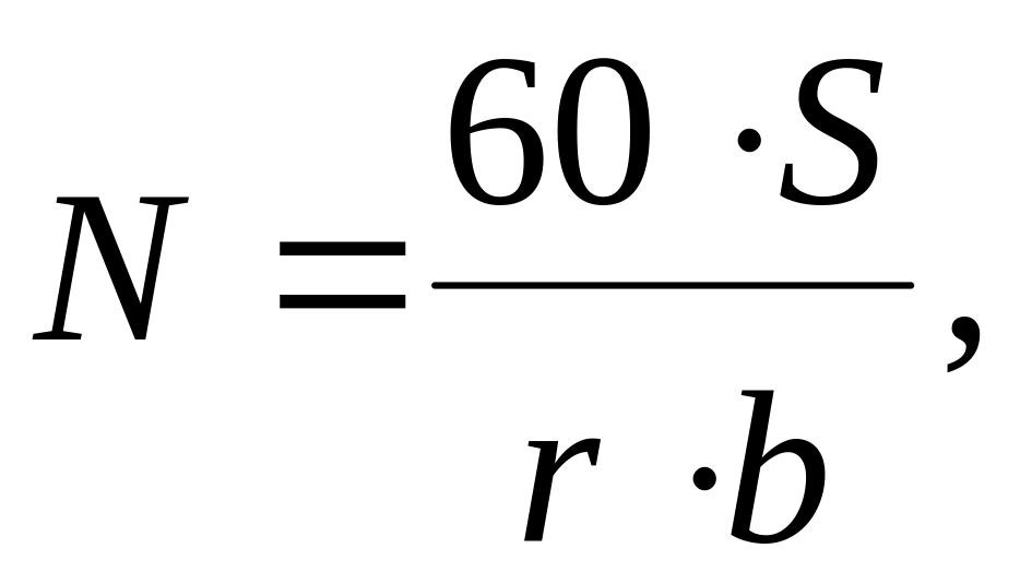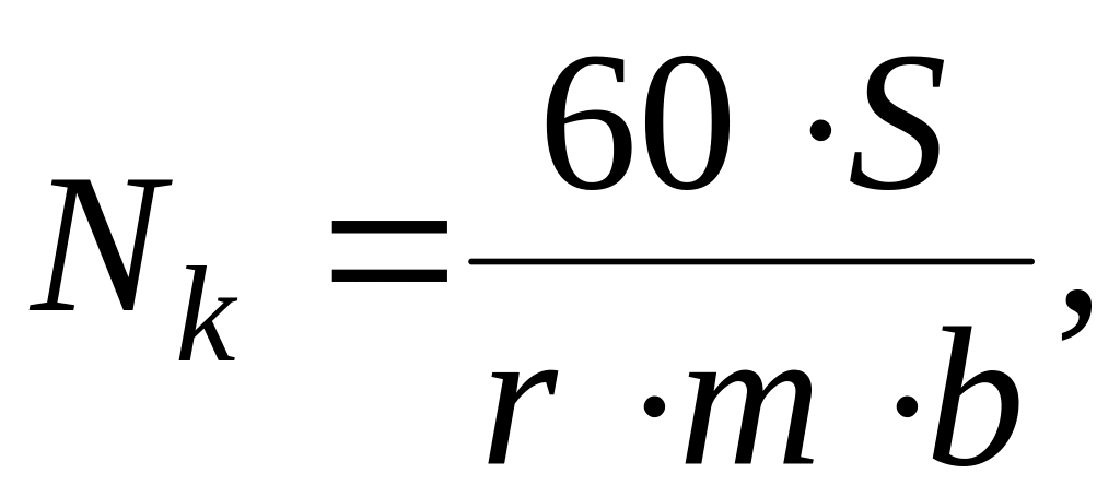 где S – время тепловой обработки изделий, принимается кратным ритму работы конвейерной линии и с условием, чтобы при расчете получилось целое число камер, ч; r – ритм работы конвейерной линии, мин.; m – число форм или форм-вагонеток, размещаемых по длине камеры; b – число форм или форм-вагонеток, размещаемых по высоте камеры.