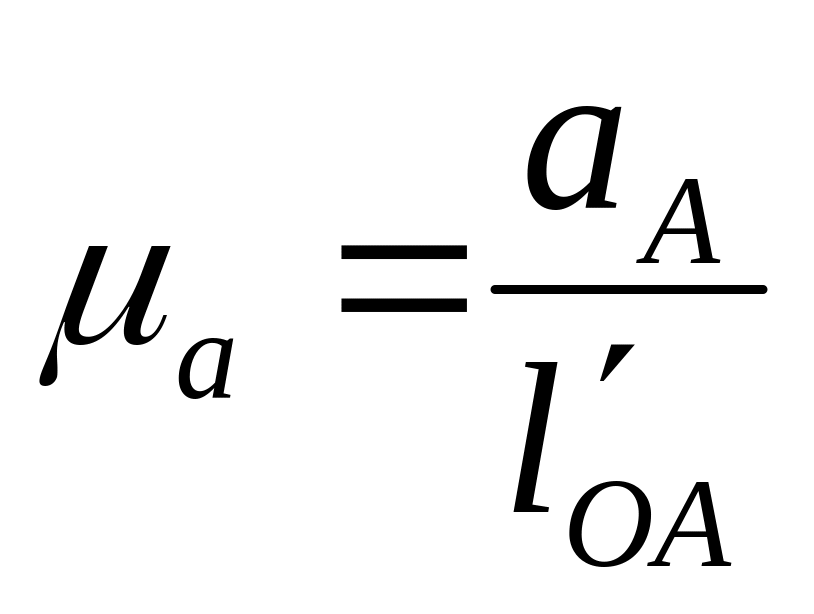 Соединив точку с полюсом , получим графическое изображение вектора ускорения точки . Действительные значения ускорений точек определяем измерением отрезков на чертеже с учётом масштабного коэффициента.