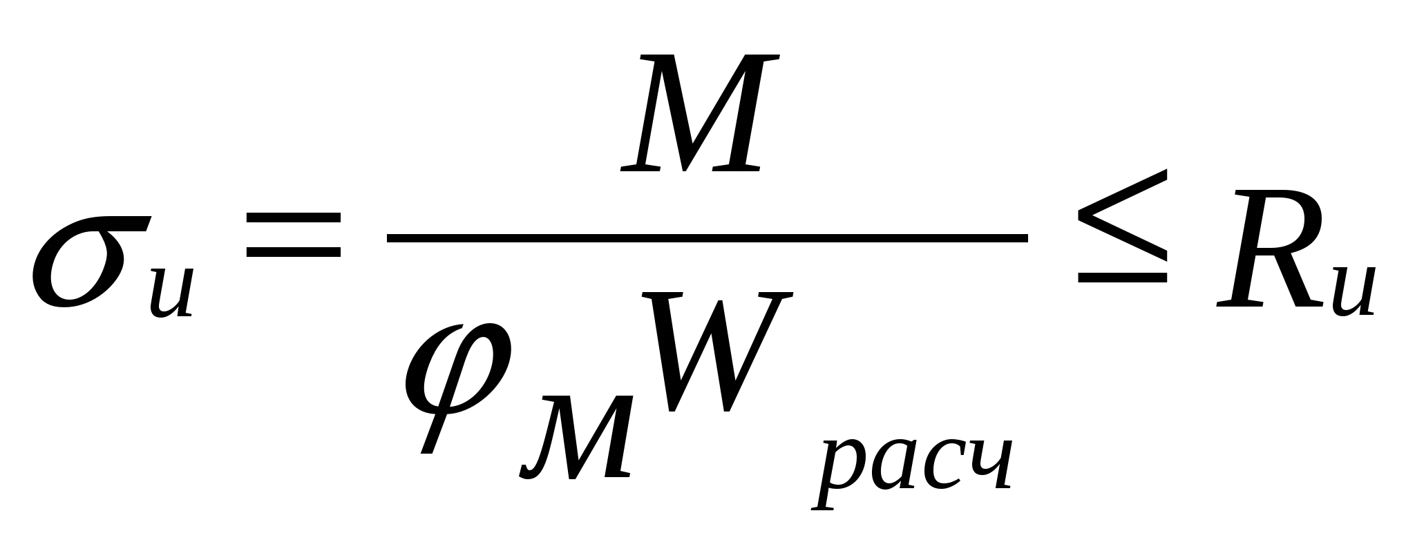 Расчёт на устойчивость плоской формы деформирования изгибаемых элементов прямоугольного постоянного сечения производится по формуле