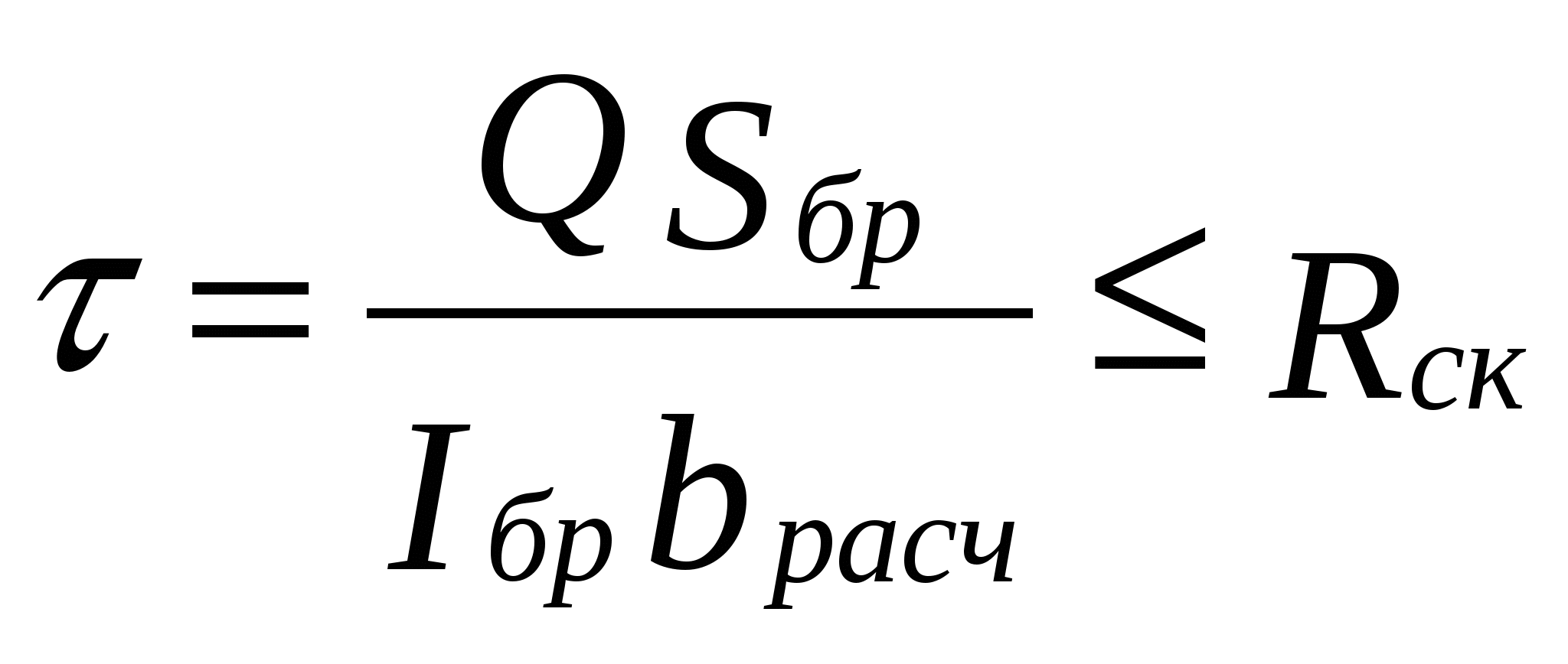 где Q - расчетная поперечная сила; Sбр - статический момент брутто сдвигаемой части поперечного сечения элемента относительно нейтральной оси; Jбр - момент инерции брутто поперечного сечения элемента относительно нейтральной оси; bрасч - расчетная ширина поперечного сечения элемента; Rск - расчётное сопротивление древесины скалыванию вдоль волокон при изгибе с учетом всех необходимых коэффициентов условий работы;