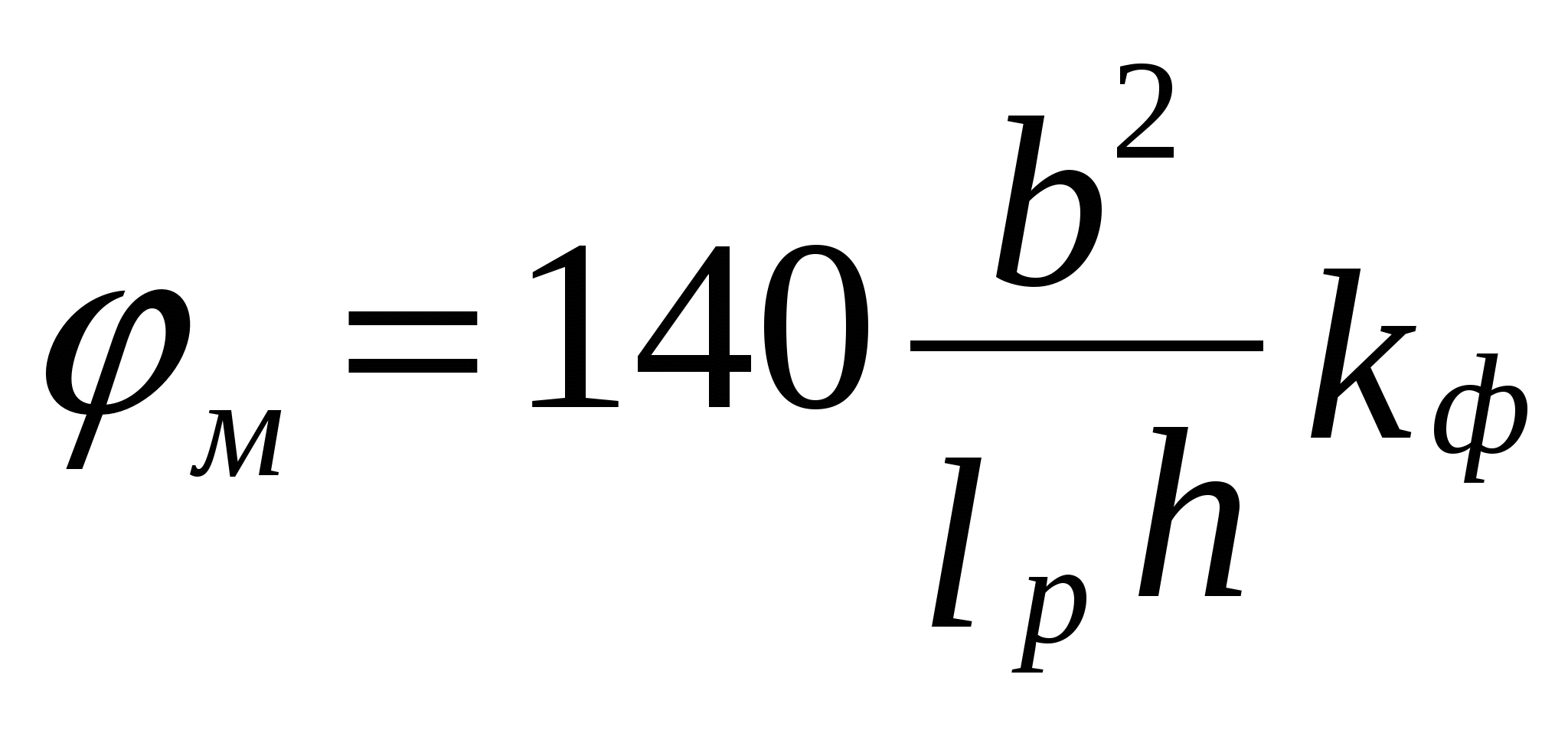 где lр – расстояние между опорами элемента, а при наличии раскреплений сжатой кромки элемента в промежуточных точках от смещений из плоскости изгиба, lр – расстояние между этими точками; b, h – ширина и максимальная высота сечения элемента на участке lр; kф - коэффициент, зависящий от формы эпюры изгибающего момента на расчетной длине lр .