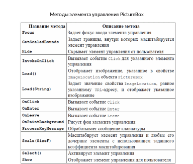 Компонент содержит в себе свойства, определяющие, как выводить изображение внутри границ самого этого объекта (в форме PictureBoxотображается в виде пустого квадрата).