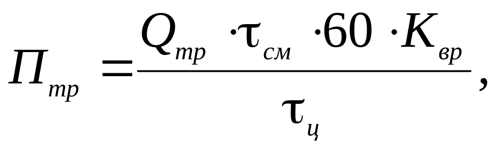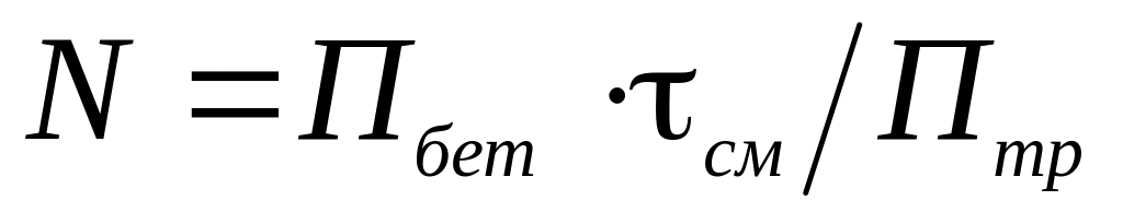 Потребность в транспортных средствах (N, шт) необходимых для обеспечения требуемой интенсивности укладки бетонной смеси, определяется по выражению