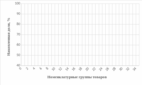 На основе метода АВС строится график номенклатуры запасов, на основе которого определяются характеристики управления запасами, а также месторасположение товара на складе.