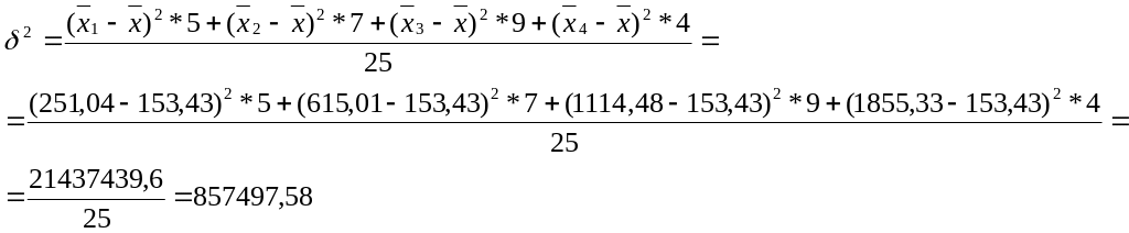 Внутригрупповая дисперсия (средняя из групповых дисперсий) измеряет степень колеблемости признака во всей совокупности в целом за счет действия на него всех прочих признаков, кроме группировочного признака, определяется по формуле: