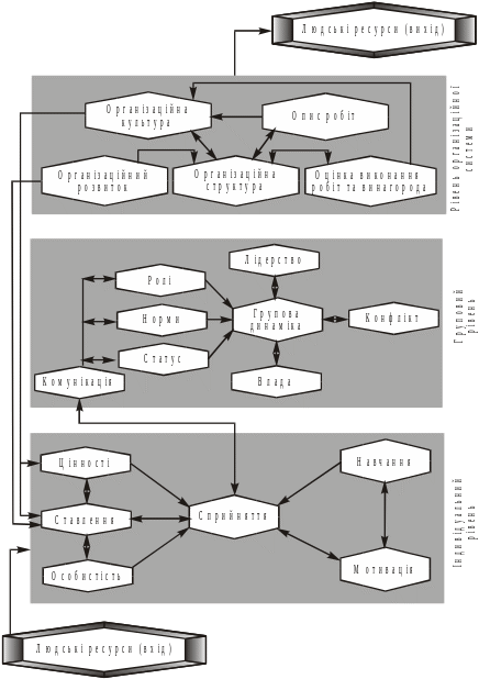 Рис. 1.4. Поведінка людей в організації та чинники, що на неї впливають