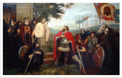 Сергий Радонежский благословляет Дмитрия Донского на ратный подвиг.