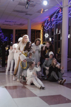 Посол – переводчик: Какой Новый Год без снега? Без красивых снежинок? Правильно! Никакой! Встречайте, танец «Снежинки»