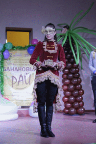 Мужской конкурс «Подиум» Количество участников: 7 человек. Молодые люди соревнуются между собой за звание «Главный министр Бананового Рая». Каждому придумывается прозвище. Конкурс состоит из двух частей: 1) Танцевальная заявка участника. У каждого индивидуальная музыка. 2) Участник показывает номер. Демонстрирует свои умения – танцует, садится на шпагат, стоит на ногах и пр. Победители определяются аплодисментами.