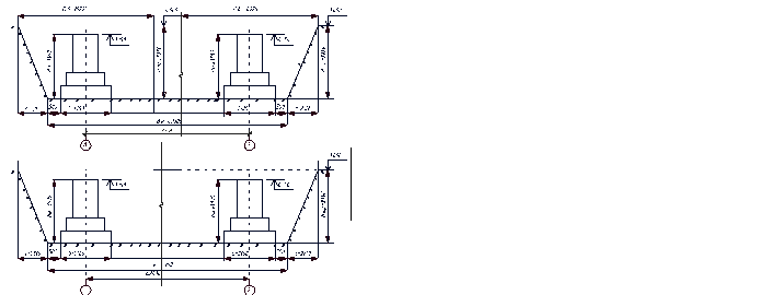Размеры котлована по низу под фундаментом каждого ряда колонны ( Lн , Bн ) определяют по выражениям: