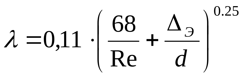 Определение коэффициента гидравлического трения по эмпирическим формулам для соответствующей области гидравлического сопротивления.