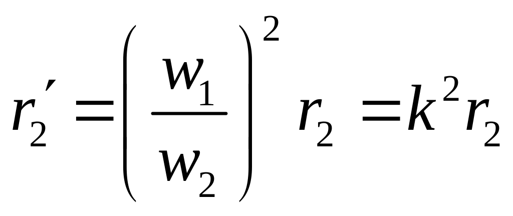 при исследовании трансформатора принято приводить все параметры вторичной обмотки к числу витков первичной. Иными словами заменять реальный трансформатор приведенным, у которого число витков вторичной обмотки равно числу витков первичной, т.е. w2= w1. При этом все величины вторичной обмотки приводятся к числу витков первичной таким образом, чтобы физические процессы в приведенном трансформаторе оставались такими же, как и в реальном. Приведенные параметры обозначаются индексом штрих.
