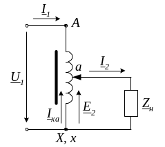 При подключении нагрузки zн появится ток I2. Пренебрегая потерями в автотрансформаторе, можно написать, что U1 I1 ≈ U2 I2, т.е. мощность, подведенная к автотрансформатору, равна мощности, полученной от него. Тогда U1 / U2 ≈ I2 / I1, т.е. имеем такое же соотношение, что и у обычного трансформатора.