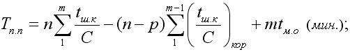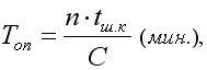 Где n – размер партии деталей, шт.; tш.к – полная норма времени на операцию (штучно-калькуляционная норма времени), мин; С – число рабочих мест на операции (фронт работы).